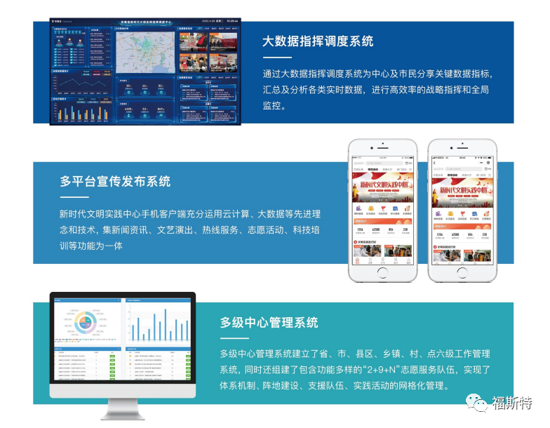 安徽福斯特信息技術(shù)有限公司持續(xù)助力新時代文明實(shí)踐中心建設(shè),充分利用大數(shù)據(jù)、云計(jì)算、移動互聯(lián)網(wǎng)等新一代信息技術(shù),打造新時代文明實(shí)踐中心云平臺,完善平臺動員、整合、引導(dǎo)、服務(wù)、創(chuàng)新和保障能力,實(shí)現(xiàn)新時代文明實(shí)踐中心的可持續(xù)運(yùn)營。